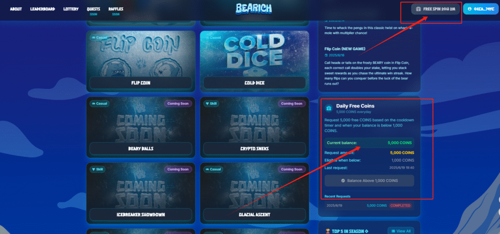 每天进去抽奖领积分,里面还可以抽奖:https://bearich.games/invite/4TDFSJ