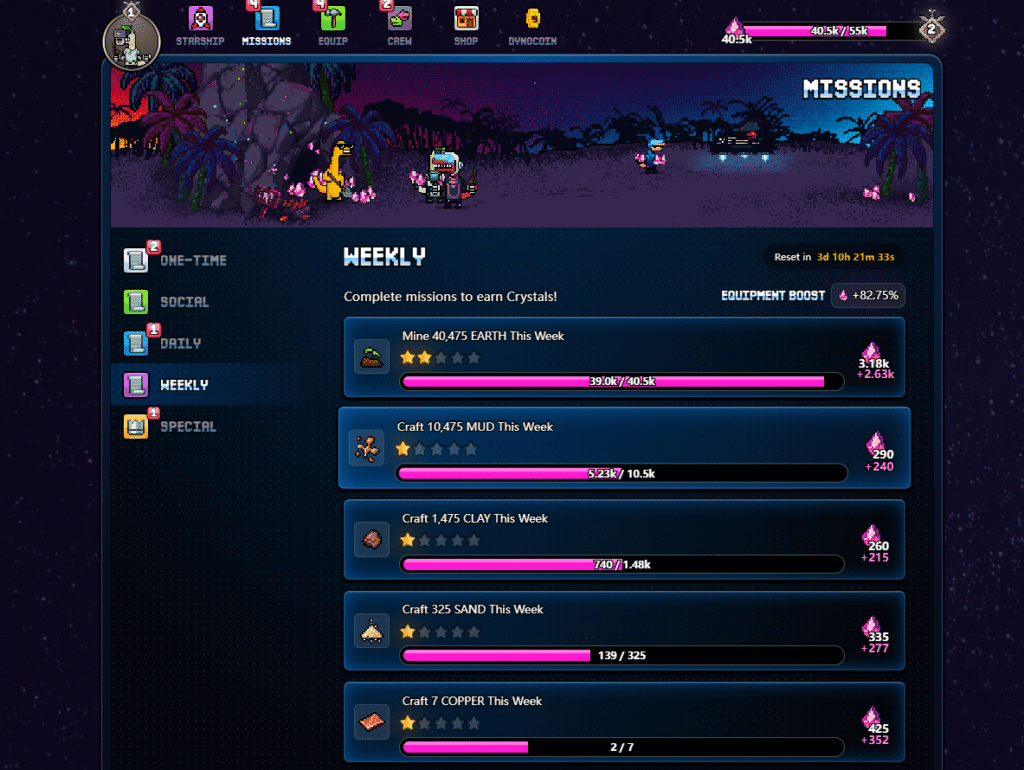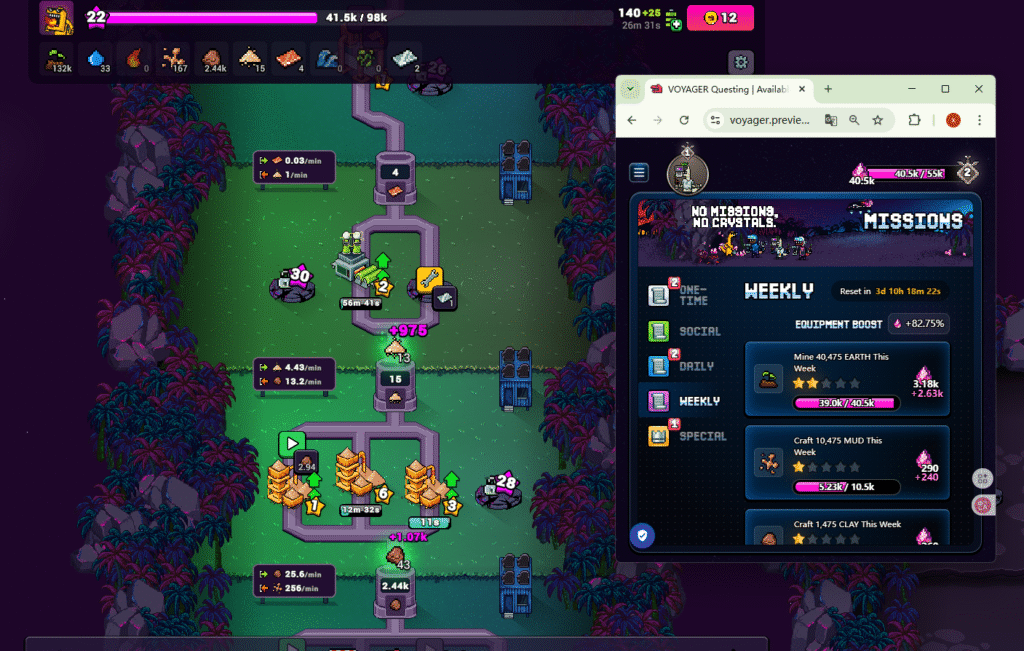 Project Voyager 是一款建立在 Craft World 之上的元层游戏,旨在通过引人入胜的游戏玩法和社交互动将许多玩家引入 VOYA 生态系统。玩家通过完成与 Craft World 密切相关的游戏内任务以及邀请朋友或在线分享内容等社交任务来获得水晶,最近活动来了